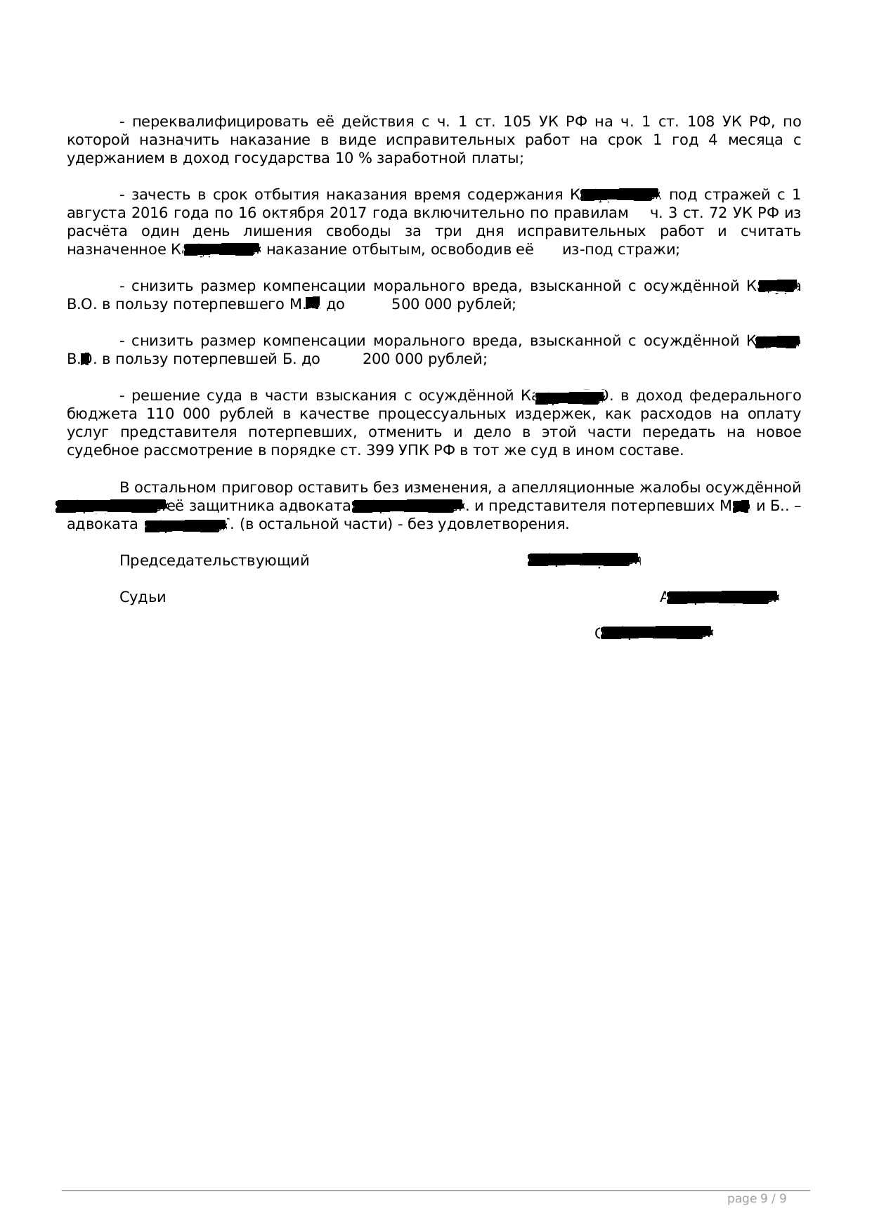 Благодаря тому, что в обязанности апелляционных инстанций является соответствие судебного постановления нормам и требованиям закона, опытный юрист помогает исключить предвзятое отношение к обвиняемому, чрезмерно жесткое наказание или, наоборот, потребовать справедливого возмездия за совершенное преступление.